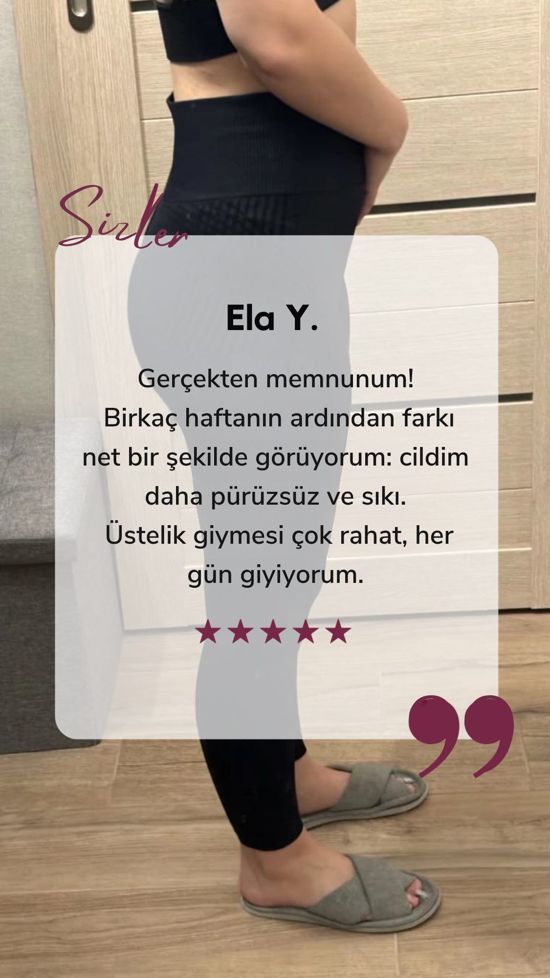 « Piyasadaki birçok kremi denedim ama işe yaramadı. Bu taytlar beni şaşırttı. Her gün giydikçe selülitlerim azaldı, bacaklarım daha sıkı hissediliyor. Böyle bir fark beklemiyordum. »